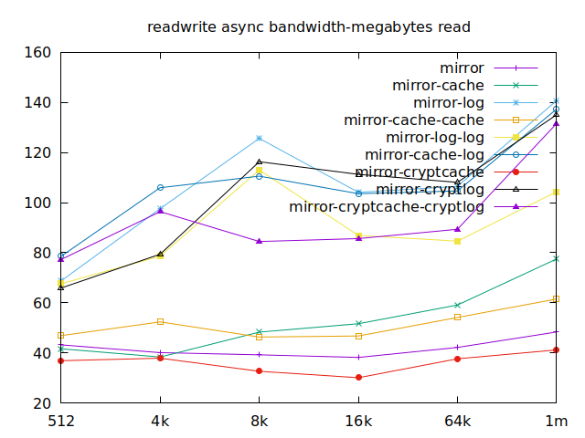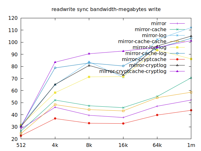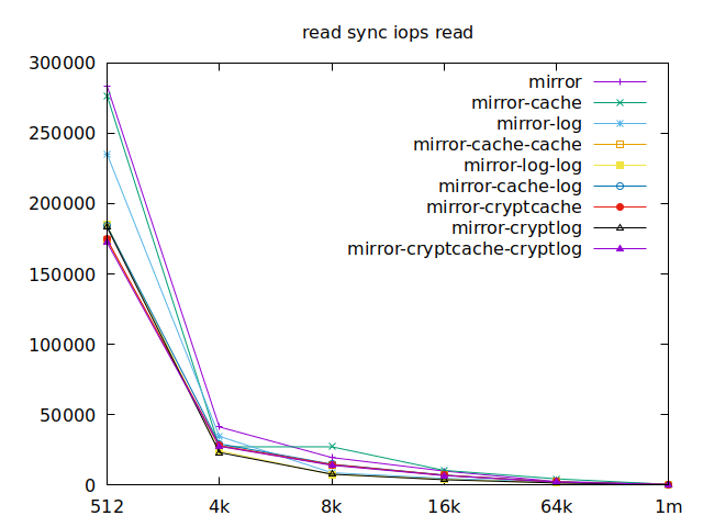 "<(sed -n '/^mirror-cryptcache-cryptlog\t/p' read-sync.dat)" using 3:xticlabels(2) with linespoints title 'mirror-cryptcache-cryptlog', \